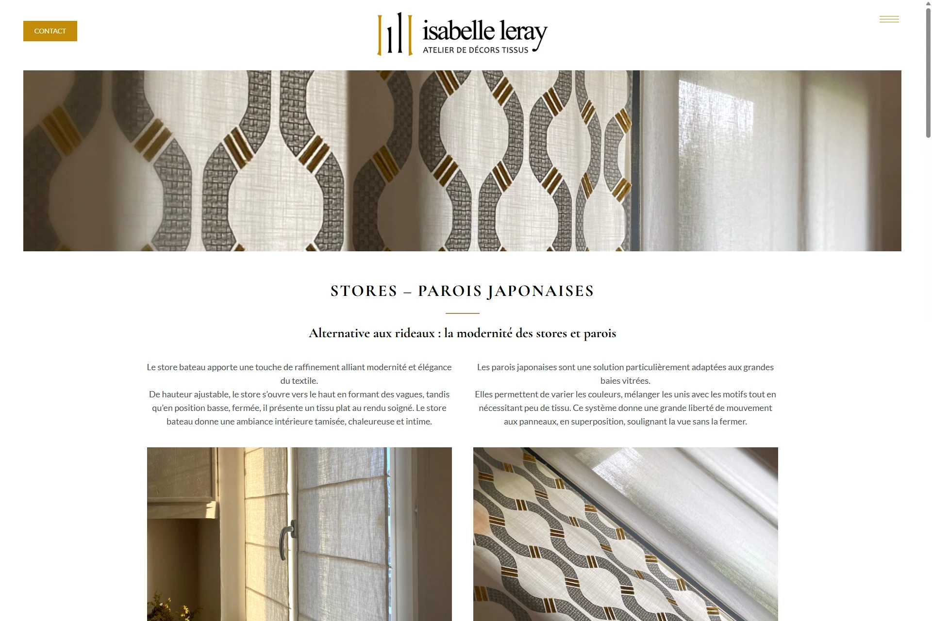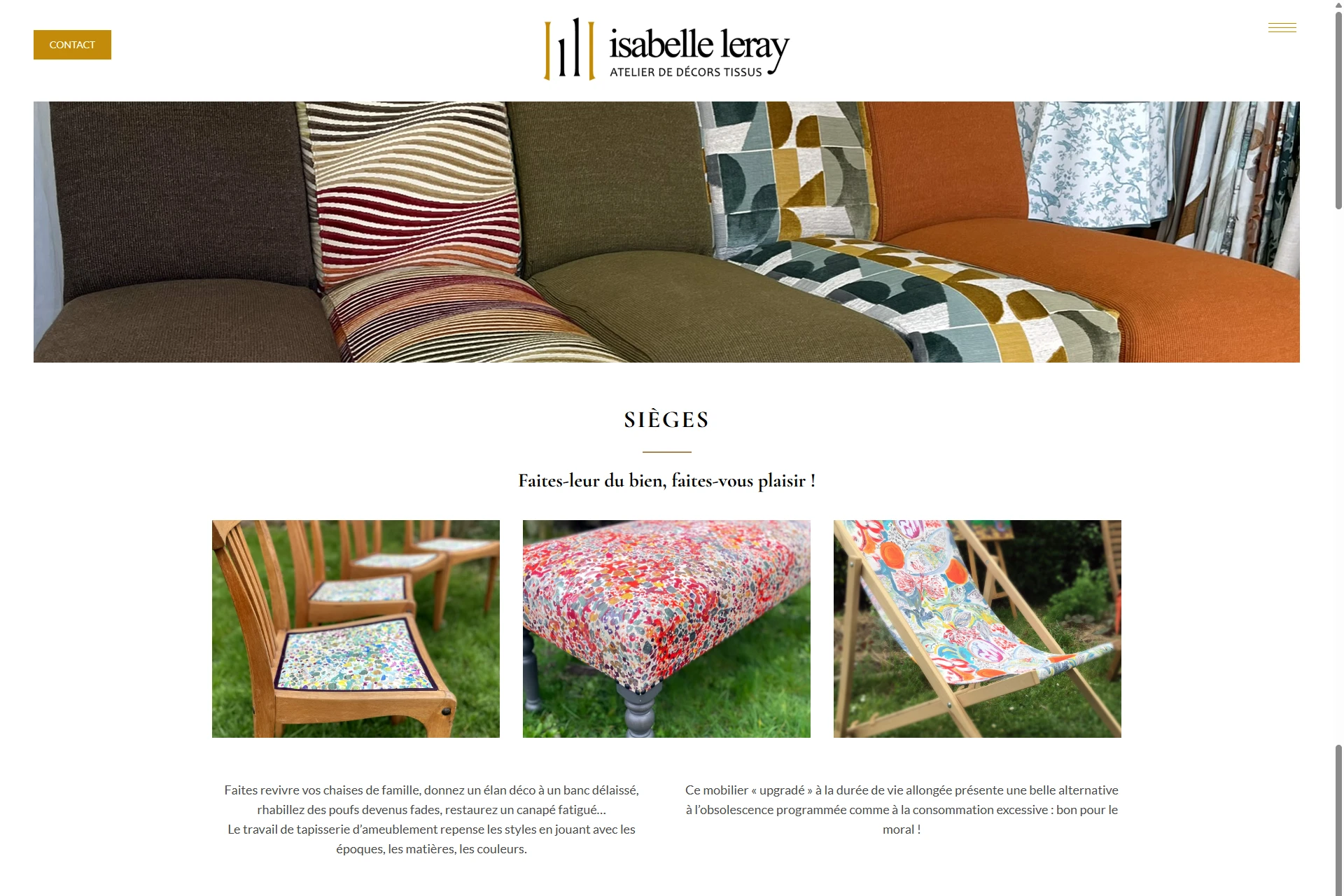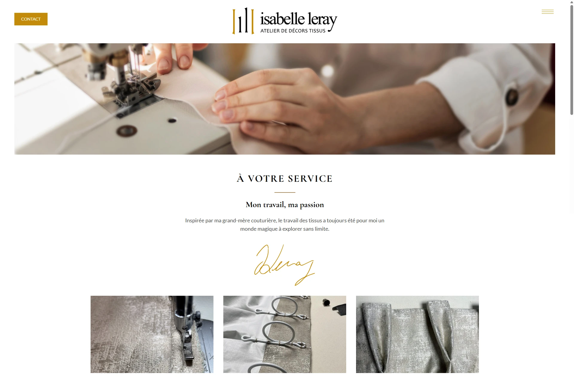 Création du site internet isabelle-leray.fr, atelier de décors tissus à Rezé : créations textiles originales, soignées et sur-mesures, dédiées à votre intérieur.