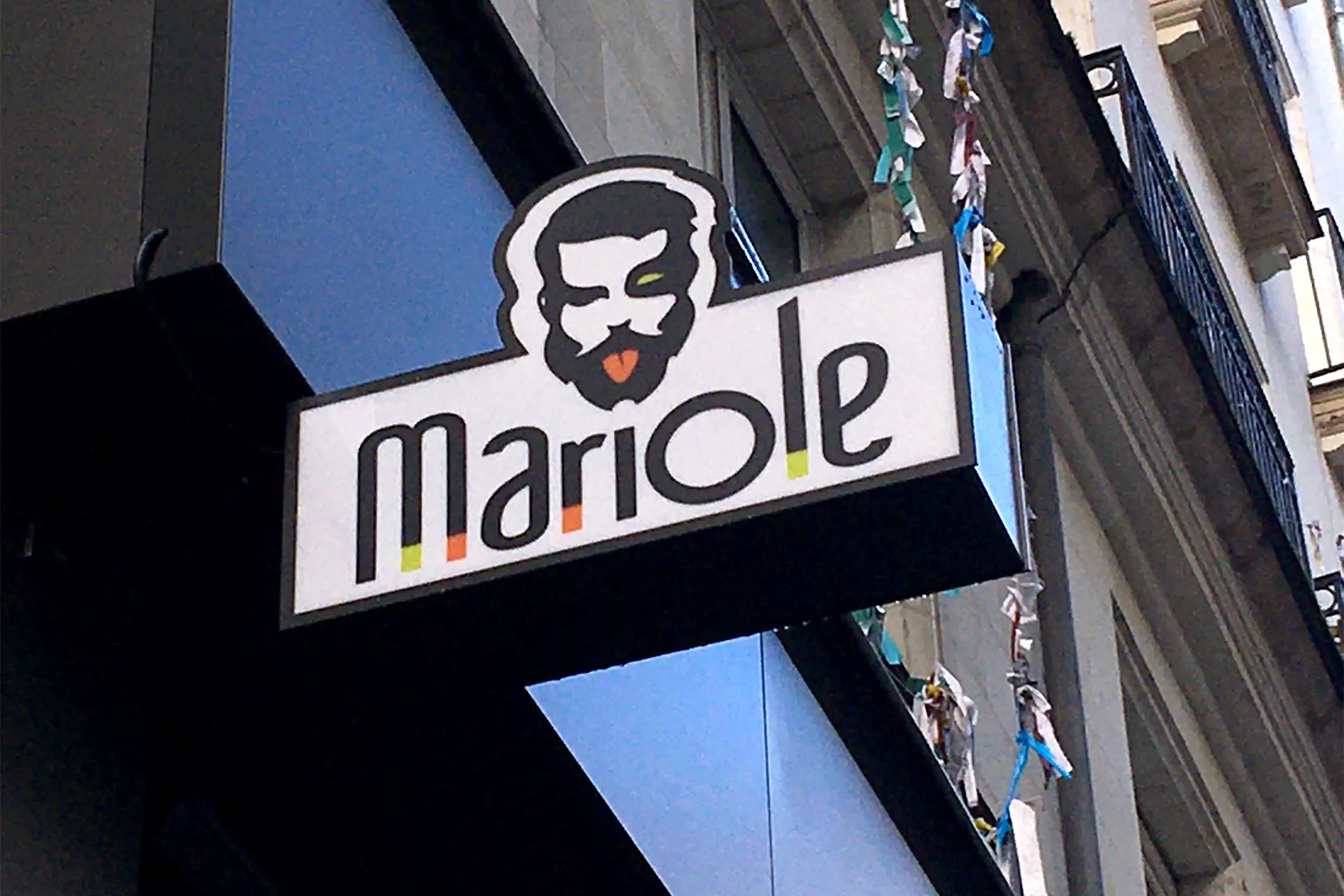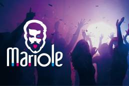 Création du logo, dans un esprit « élégant et décalé ». L’établissement est personnalisé par un visage traité en silhouette, une « gueule » contrastée : à la fois sérieuse et délirante. Le texte « Mariole », vivant, épouse la silhouette du personnage dont la pointe de la barbe suggère en absence le point du « i ».