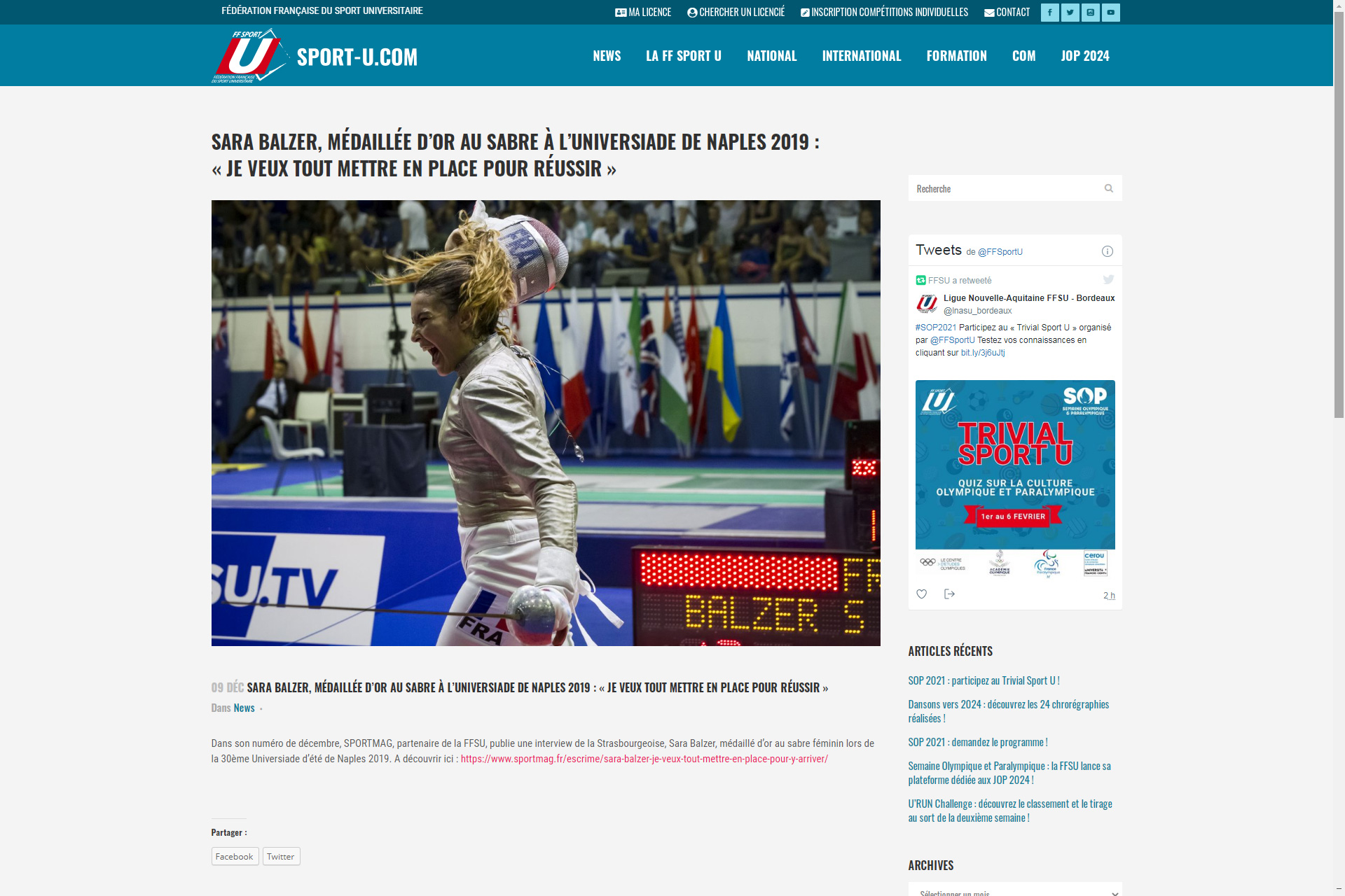 Sport-u.com, site officiel de la Fédération Française du Sport Universitaire.